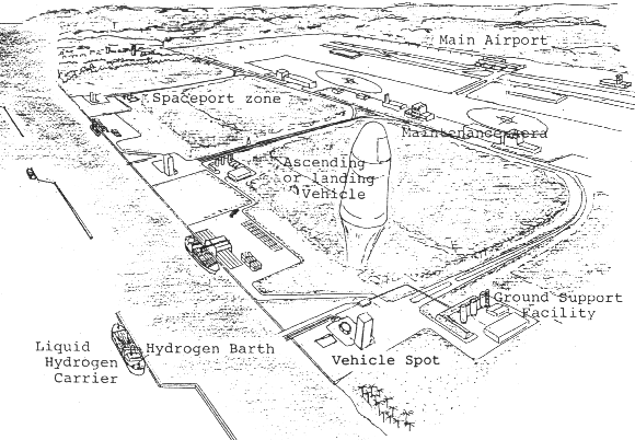 When fifty vehicles are to enter operation, about ten spaceports will be required to provide services to their flights. The fifty vehicles will be owned by more than ten operating companies. As far as the propellant supply is concerned, in the early phase of space tourism, four to five flights will take place at each spaceport everyday. In this case, each spaceport will be required to handle 4000 kl (280 ton) of liquid hydrogen and 1500 kl (1600 ton) of liquid oxygen for net loading in vehicles everyday.