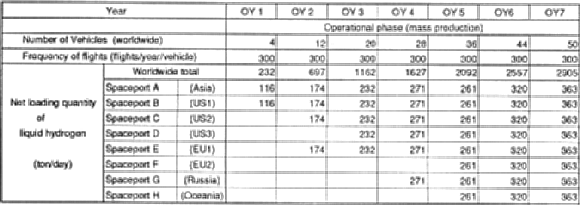 In Table 1, most of the vehicle characteristics were given as a statistical data of a transportation system, except for the numbers of passengers and the cost of fuel per flight. To estimate quantitative demand of liquid hydrogen, based on these figures, design data of some vehicles will be used. Actually, there are few choices of vehicles which have potential capability to carry fifty human passengers by propellants worth 16 million Yen.